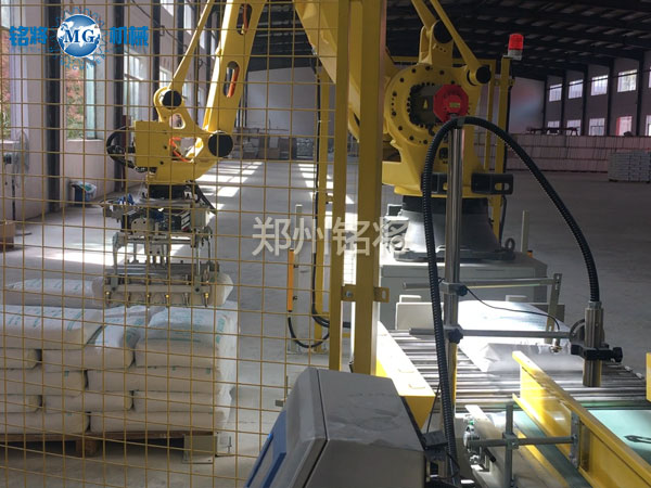 自動碼垛生產線是機械與可編程序PLC有機結合的產物,為現代自動化生產提供了更高的生產效率,替代重復,繁重的人工勞動!主要包括機器人主機(ABB,庫卡,安川等進口品牌或著名國產品牌),抓包或抓箱機械抓手,安裝底座,控制柜及電纜,配套托盤庫,包裝袋輸送線以及跺盤輸送線等!