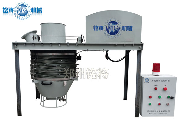 散裝機可選配一臺DMC型電子脈沖除塵器,由抽塵風機、噴吹系統、箱體和濾袋組成。箱體設有吸塵口,把從散裝機吸來的含塵氣體經濾袋后得到凈化,凈化后的氣體經由抽塵風機出風口排空,滯阻在濾袋外壁的灰塵經由噴吹系統循環處理以后被清除。從而實現現場無塵作業。